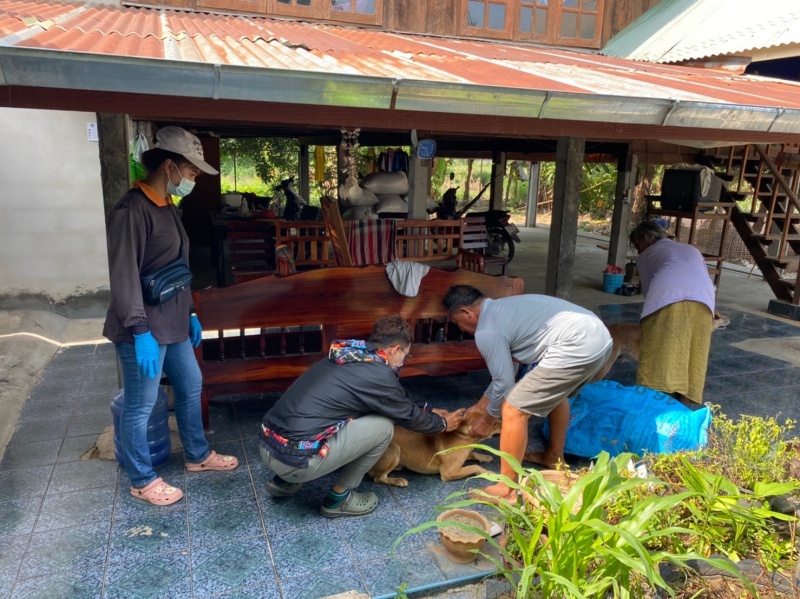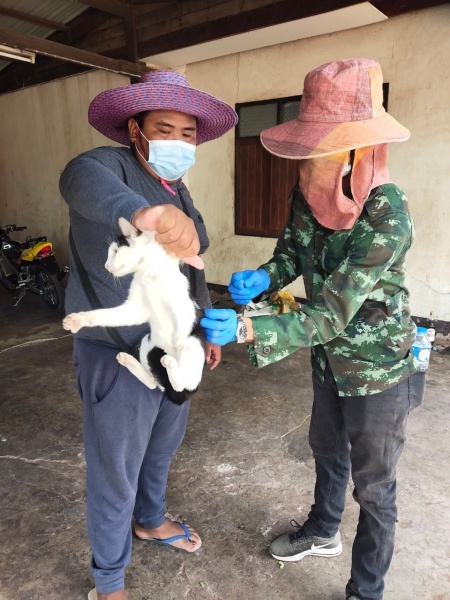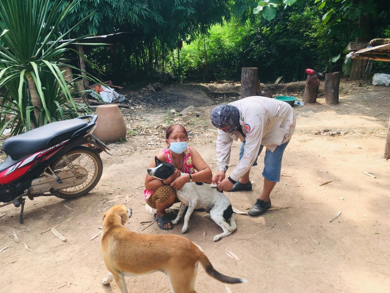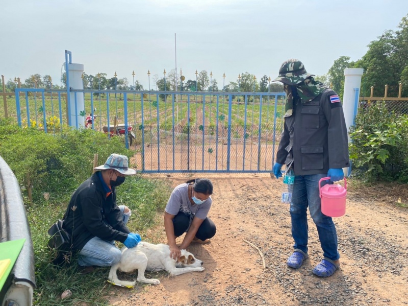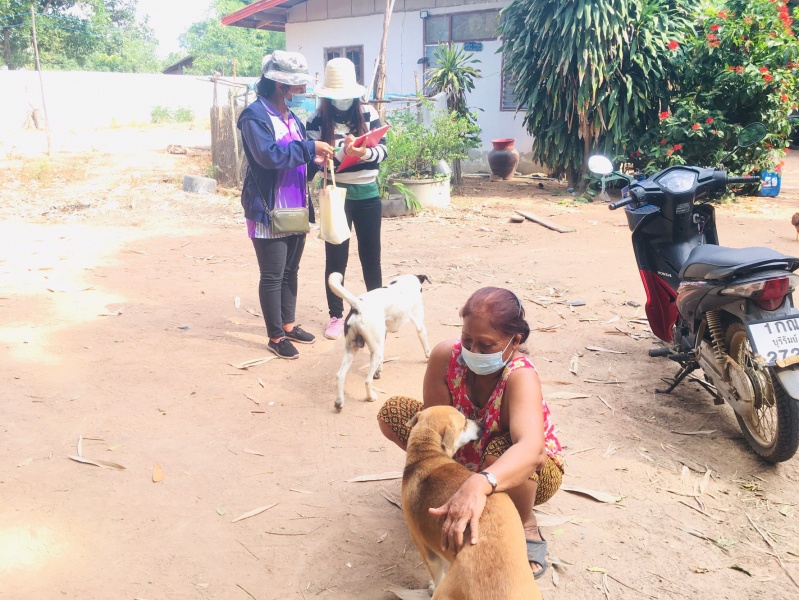 นางสาวภรภัทร อินทร์บุญ ตำแหน่งนักจัดการงานทั่วไปชำนาญการ ดำเนินงาน โครงการสัตว์ปลอดโรค คนปลอดภัย จากโรคพิษสุนัขบ้า ตามพระปณิธานศาสตราจารย์ ดร.สมเด็จเจ้าฟ้าฯ กรมพระศรีสวางควัฒน วรขัตติยราชนารี ระหว่างวันที่ 19 - 28 พฤษภาคม 2564 ในเขตพื้นที่ตำบลทรัพย์พระยา